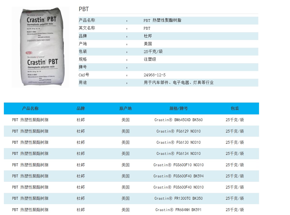 美国杜邦PBT 聚酯 CRASTIN SK645FR NC010,聚对苯二甲酸丁二酯